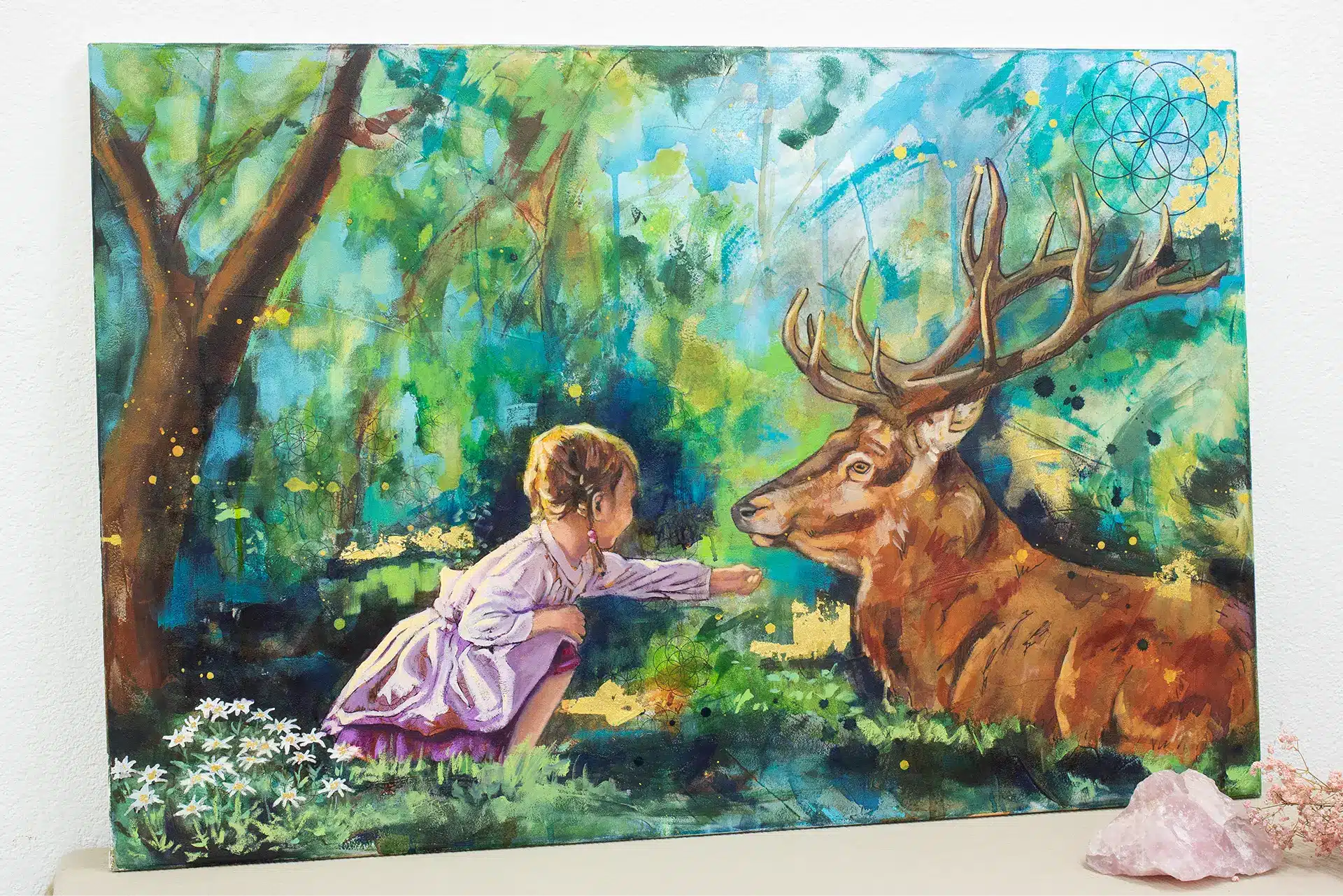 Das Edelweiß in diesem Kunstwerk steht für Reinheit, Schönheit, Würde und innere Stärke.