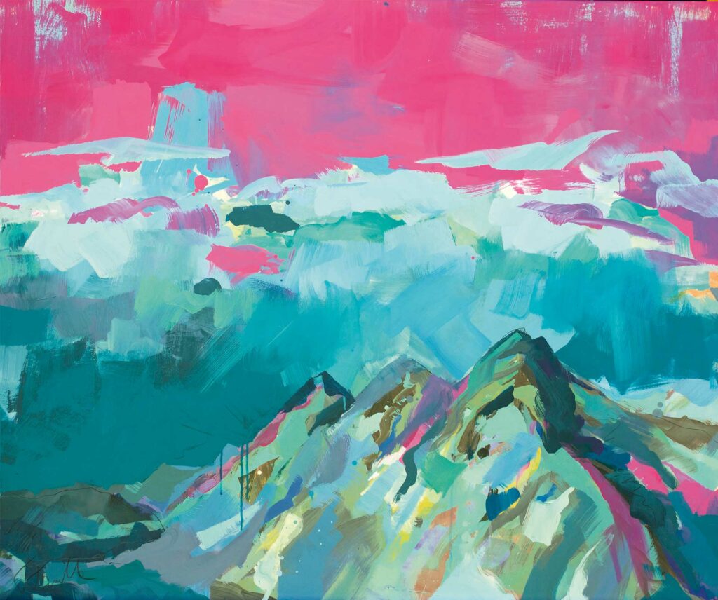 An diesem Tag ist allerdings sprichwörtlich so ziemlich alles ins Wasser gefallen. Wir hätten, wie es der Name schon verrät, am Abend, im Freien mehrere Werke präsentieren können. Leider hat es angefangen wie aus Kübeln zu gießen und wir mussten uns für ein Bild entscheiden, das die Jury beurteilen sollte. Schlussendlich hatte ich mich für das große Bild „Bergblick“, 120×100 cm entschieden.